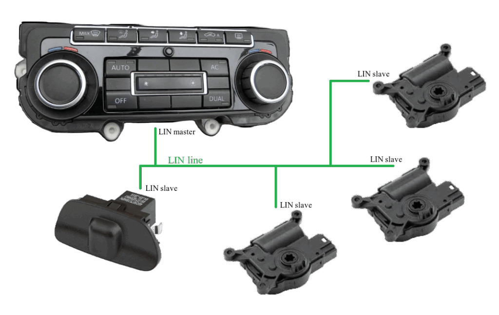 LIN is widely used in automotive body and comfort electronics, where cost efficiency and reliable communication are key requirements. Typical applications include door modules and window lifters, seat control and climate systems, as well as mirror adjustment and interior lighting. In addition, LIN is commonly used to connect simple sensors and actuators to a central control unit.